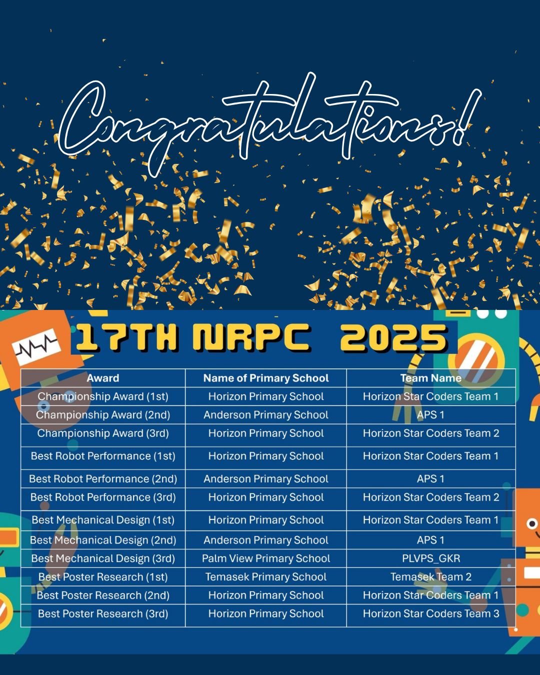 NRPC aims to challenge young minds by stretching their potential in STEM and providing them an opportunity to develop skills such as problem solving, computational thinking, creative thinking and team spirit. Admiralty Secondary School started National Robopreneur Carnival (NRPC) in 2007. In 2009, Nanyang Polytechnic came onboard to co-organise this meaningful competition. In 2017, we updated NRPC to National Robotics Programming Competition to better reflect the coding and computational thinking aspect. The competition took a 2 year break in 2020 and 2021 due to COVID and transited to online format in 2022 offering only to primary schools.
